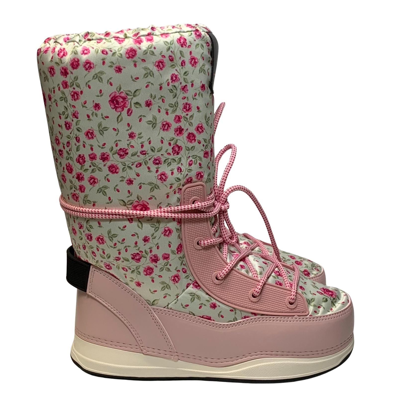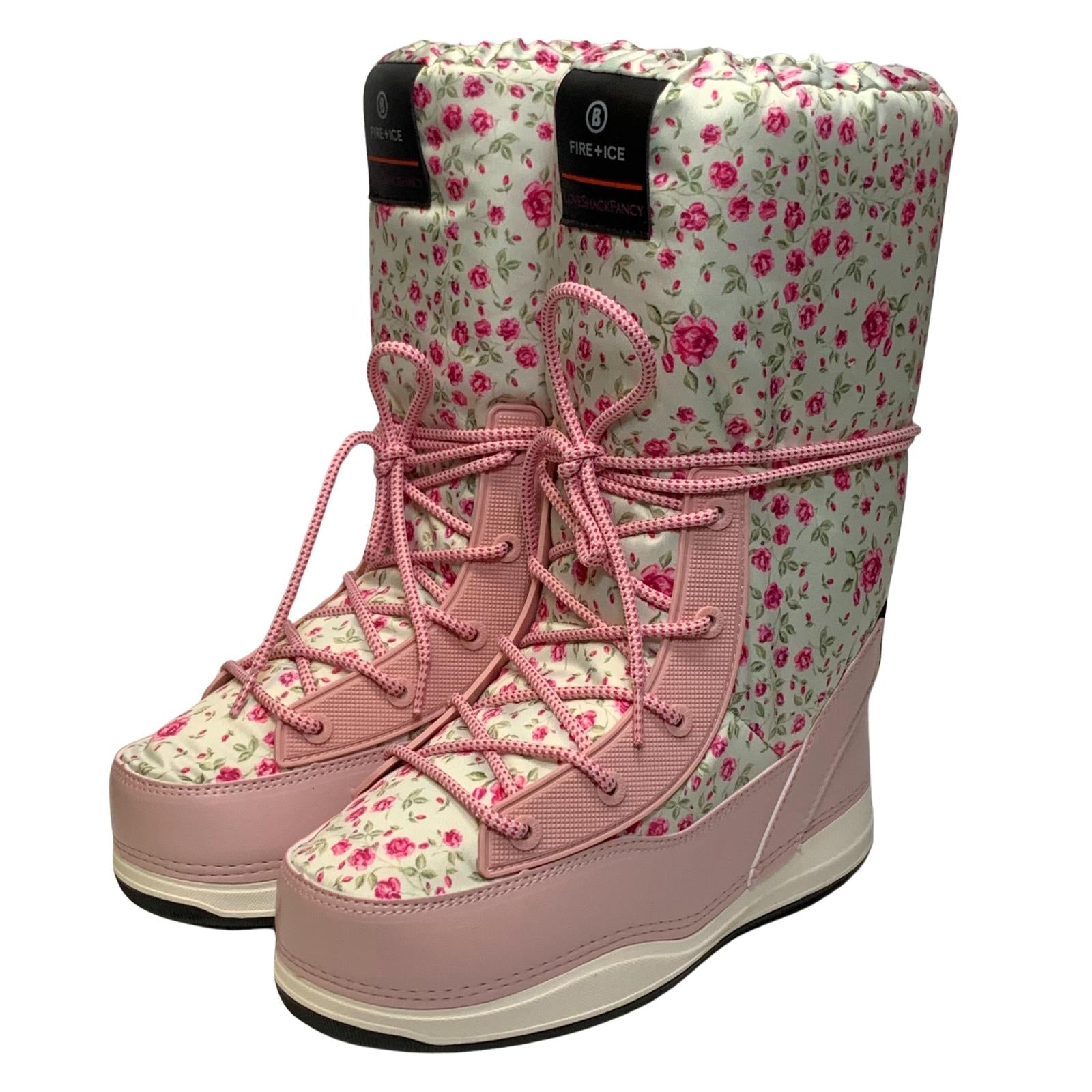 Floral Ski boots from Bogner Fire + Ice in collaboration with Love Shack Fancy. Laced front.